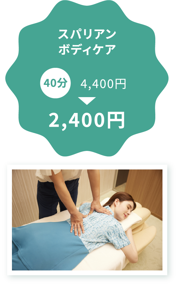 キレイになって更にお得!エステ&リラクプラン エステ&リラクゼーションを体験していただくと合計金額から2,200円割引いたします!対象日:全日利用可能 キレイになって更にお得!エステ&リラクプラン エステ&リラクゼーションを体験していただくと合計金額から2,200円割引いたします!対象日:全日利用可能