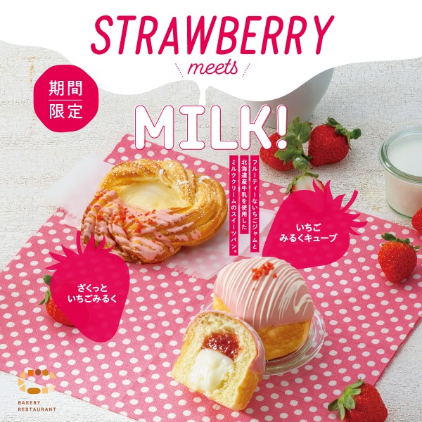 【お知らせ】期間限定パンが新登場!いちごみるくキューブ/ざくっといちごみるく★