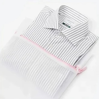 將襯衫輕輕折疊,一件一件放入洗衣網。在這個時候,扣上前扣可以防止變形。