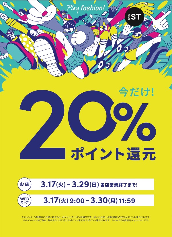 活動期間,購買金額的20%將通過andST積分返還!