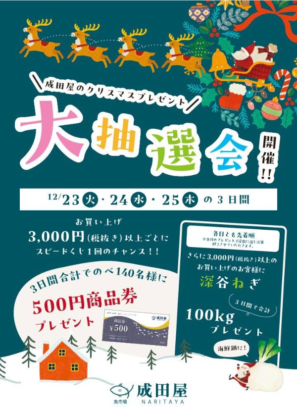 購買滿3,000圓的顧客可獲得新鮮的時令『深谷蔥(約3-4根)』。