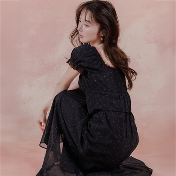 這款連衣裙帶有獨特的櫻桃圖案,輕盈的雪紡恰到好處地襯托出了甜美和高雅。