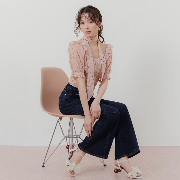 推薦您搭配牛仔褲子,打造出減少甜美感的風格。