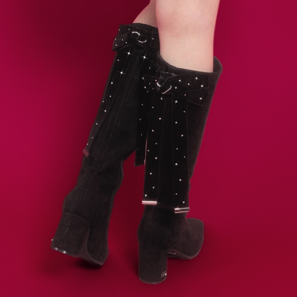 華美的珠光天鵝絨蝴蝶結給人留下深刻印象的2WAY長靴。