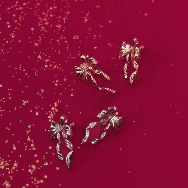 具有微妙感的絲帶圖案耳飾,十分吸引眼球。