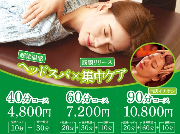 擊退疲勞+極致睡眠頭部SPA 90分鐘 10,500日元