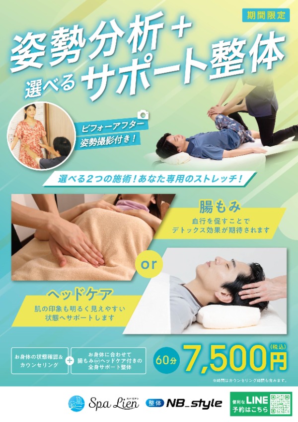 姿勢分析+可選擇的腸部按摩或頭部護理