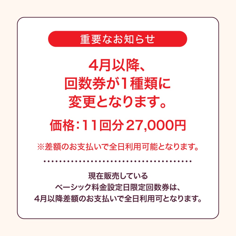\ 基本料金設定日限定入館回數券(11張綴・6個月)/